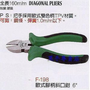 黑手專賣店 附發票台灣製 外銷日本品 FUJIYA 富具亞 歐式膠柄斜口鉗 鋼絲鉗 老虎鉗 斜口鉗 F-198