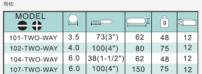 規格:101、102、104、107(詳細規格如圖)