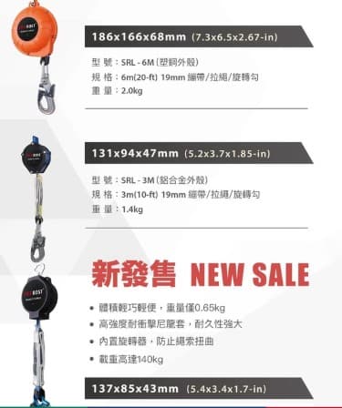 型號:SRL-3M 織帶寬度:19mm 重量:1.4公斤 鋁合金外殼