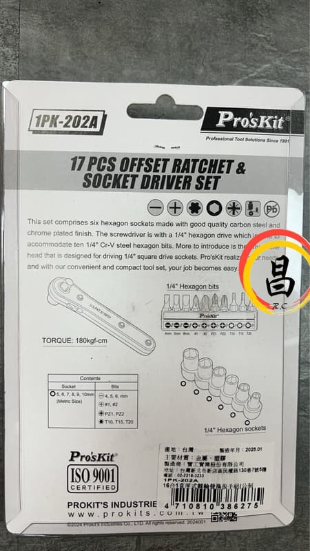 品名:Pro’sKit寶工 2分17件套筒起子組