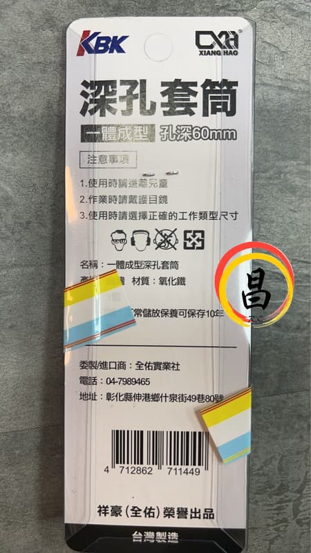 KBK 六角一體深孔套筒 100mm 深孔套筒 套筒 單支