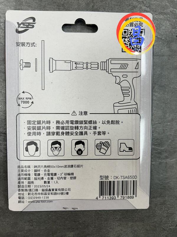 YSS2″鑽石鋸片(六角柄)//切斷片(六角柄)//DK-TSA650D// 附六角柄連接桿//切石鋸片//2吋鑽石切片// 砂輪片//可切石材.人造石. 磁磚
