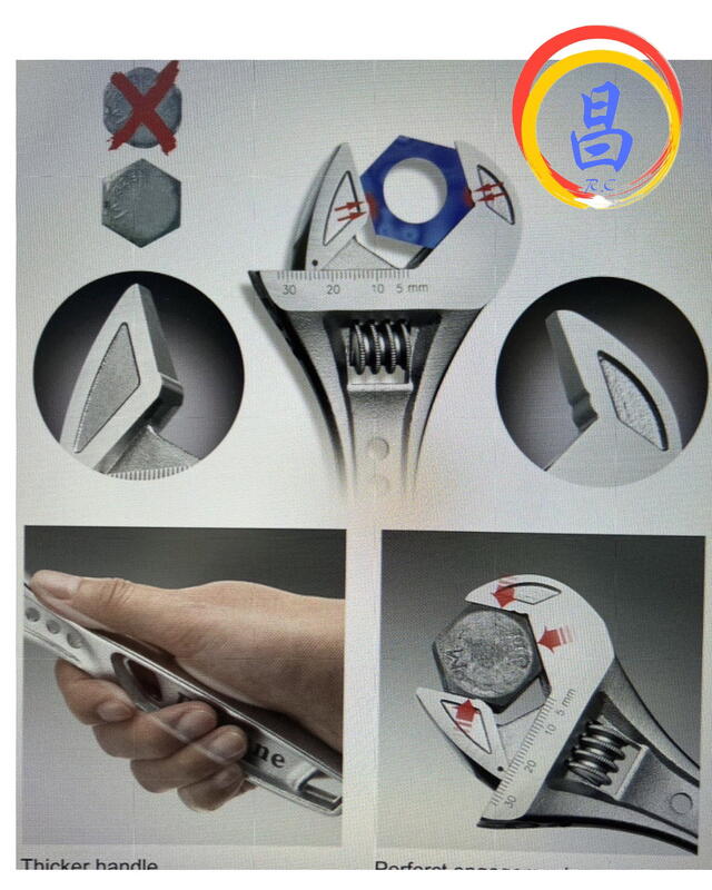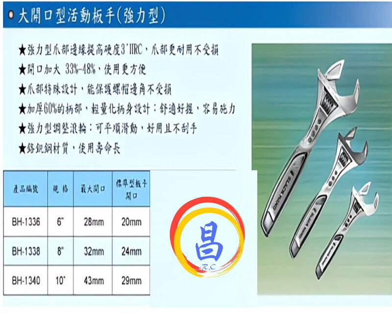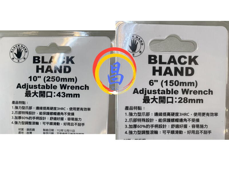 台灣製 黑手牌 6″8″10″ 強力型大開口活動板手