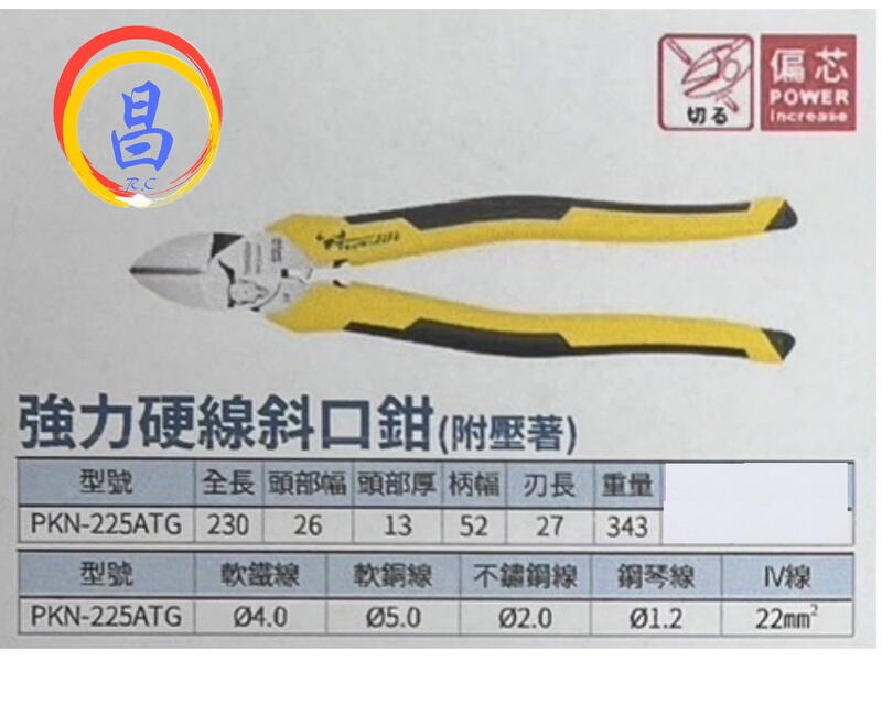 日本製 角田 TSUNODA 強力硬線斜口鉗 附壓著斜口鉗 PKN-225ATG (BR)