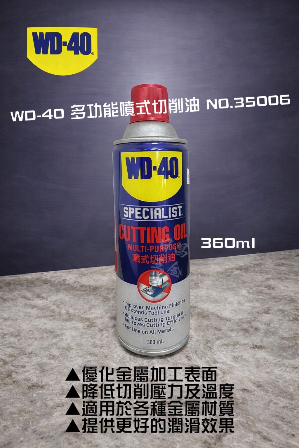 容量:360ml 配鑽孔/攻牙/切斷/鑽頭 WD40