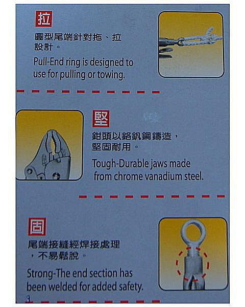 本多功能萬能鉗除一般萬能的所有功能外,握把下方有~專利圓型尾端設計