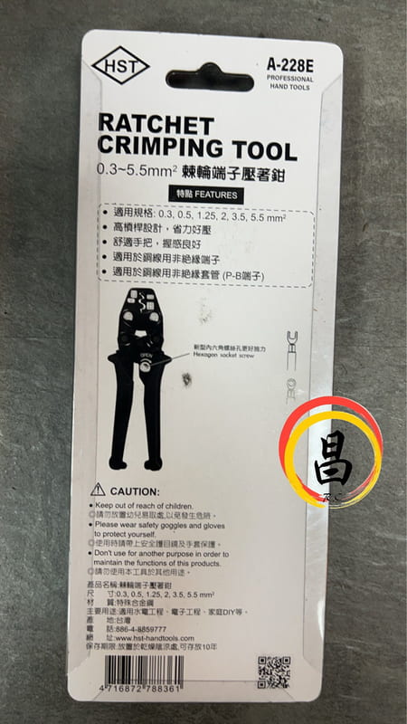 A-228E 0.3-5.5mm 2棘輪端子壓著鉗
