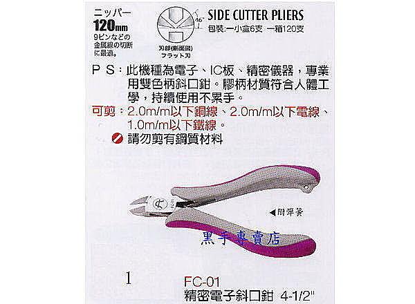 黑手專賣店 附發票台灣製 外銷日本品 FUJIYA 富具亞 薄型刀面 精密電子斜口鉗 斜口鉗 尖嘴鉗 quantity