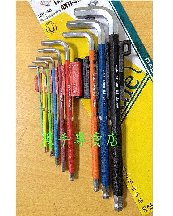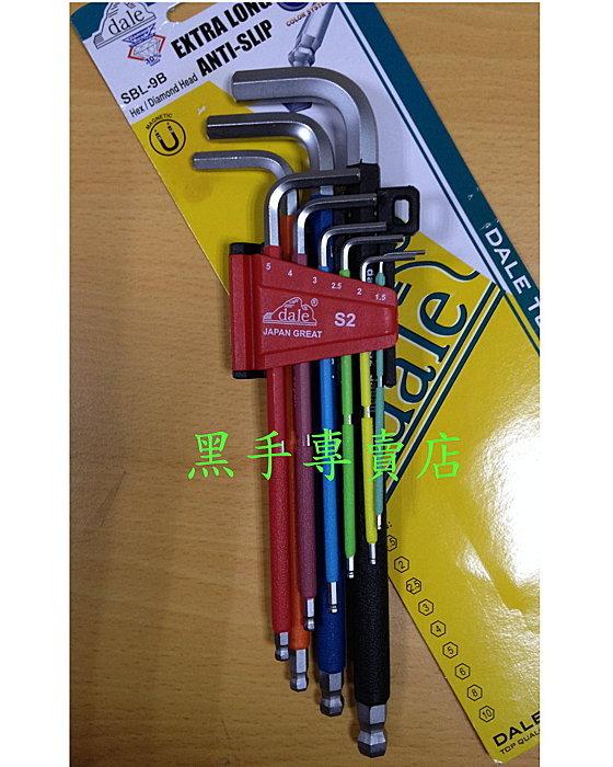 黑手專賣店 附發票台灣製 DALE 彩色防滑把手 s2材質球頭 9件組 六角板手組 六角扳手組 六角起子