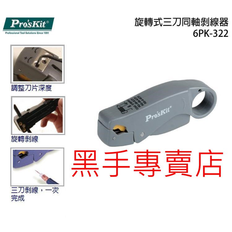 台灣寶工 Pro’sKit 型號6PK-322 旋轉式三刀同軸剝線器 直購價242元 (CZ)