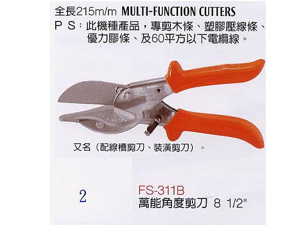 黑手專賣店 附發票 台灣製 外銷日本品 FUJIYA 富具亞 萬能角度剪刀 配線槽剪刀 裝潢剪刀