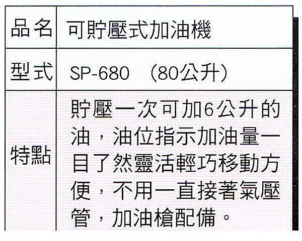 黑手專賣店 附發票 台製外銷品 80L 可貯壓式加油機 氣動加油機 另有 氣動牛油機 氣動黃油機 SP-680 quantity