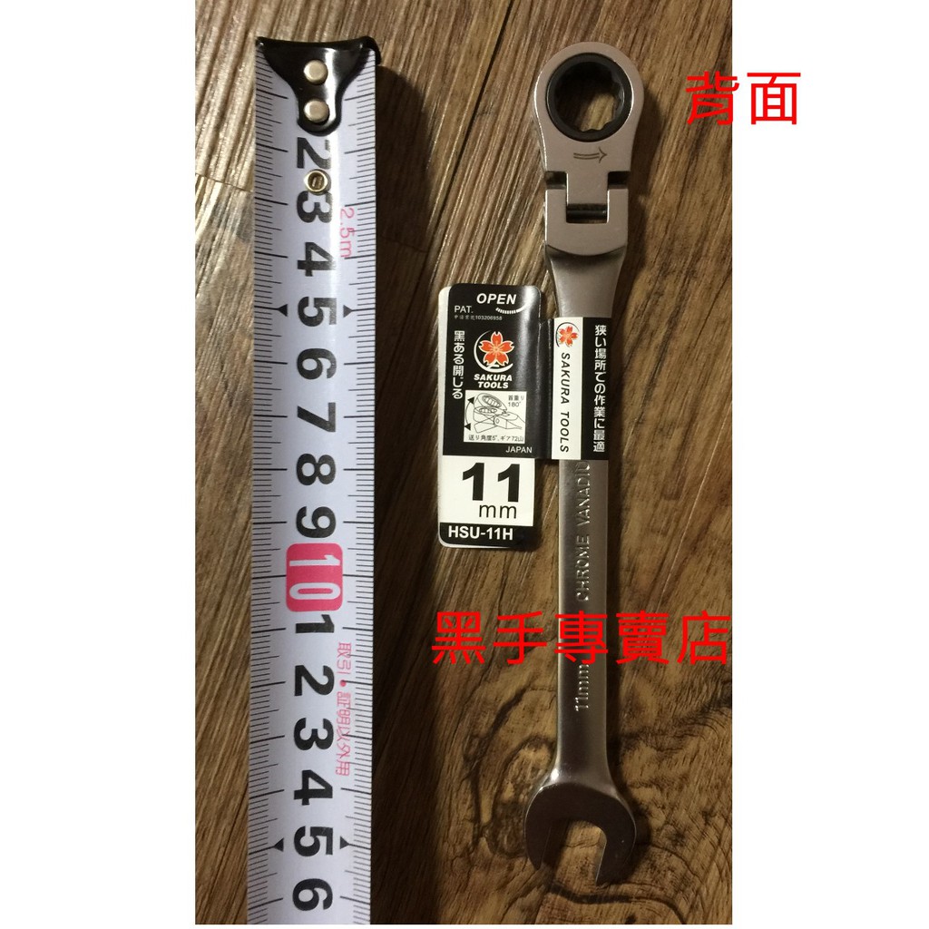 黑手專賣店 附發票 外銷日本品 SAKURA 標準活動型11mm搖頭棘輪梅開板手 非貝印搖頭棘輪梅開板手