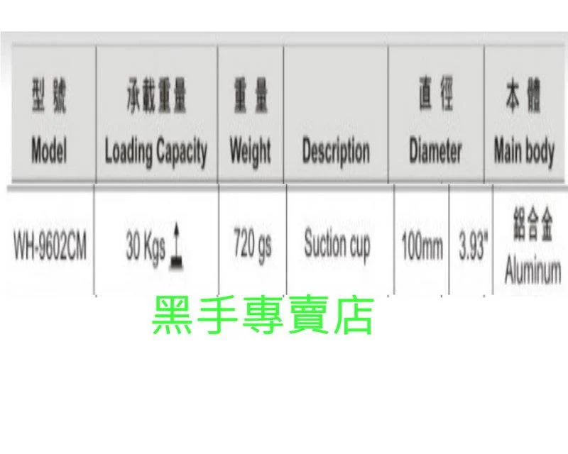 比較商品台製外銷品牌 狼頭牌 WH-9602CM 承重30公斤 強力吸盤 (A)