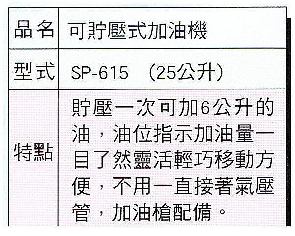 黑手專賣店 附發票 附流量計和加油槍 25L可貯壓式加油機 氣動加油機 另有 氣動牛油機 氣動黃油機 SP-615 quantity