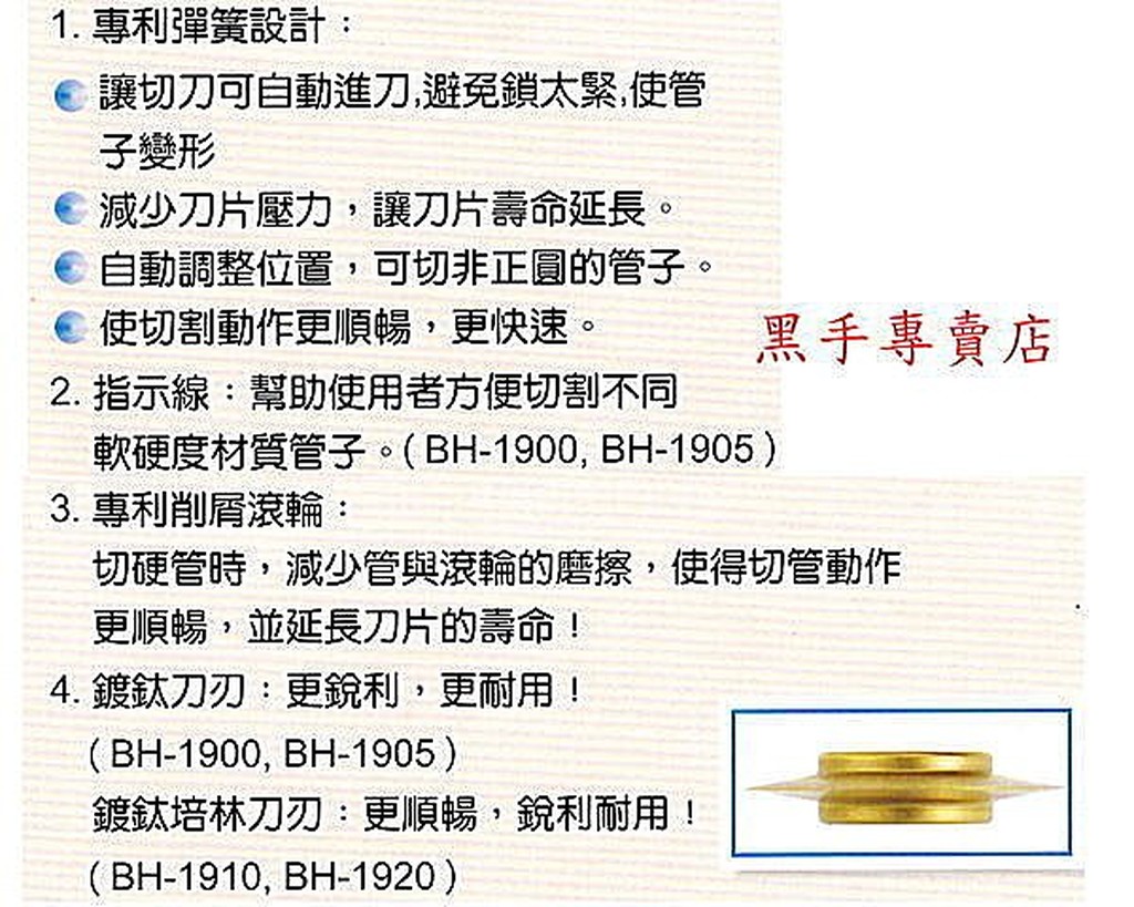 黑手專賣店 附發票 黑手牌 鍍鈦刀刃 4~32mm 銅管切管刀 鋁管切管刀 不銹鋼管切管刀 型號 BH-1905