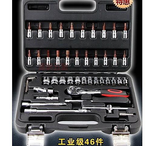 46件套裝是1/4寸系列小型套裝也就是市面上俗稱的小飛套裝。隨車攜帶方便,適合簡單汽車保養維修,不可以拆卸汽車輪胎和火花塞。