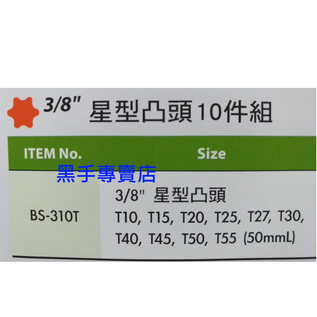 GENIUS 型號 BS-310T 3/8吋星型凸頭10件組