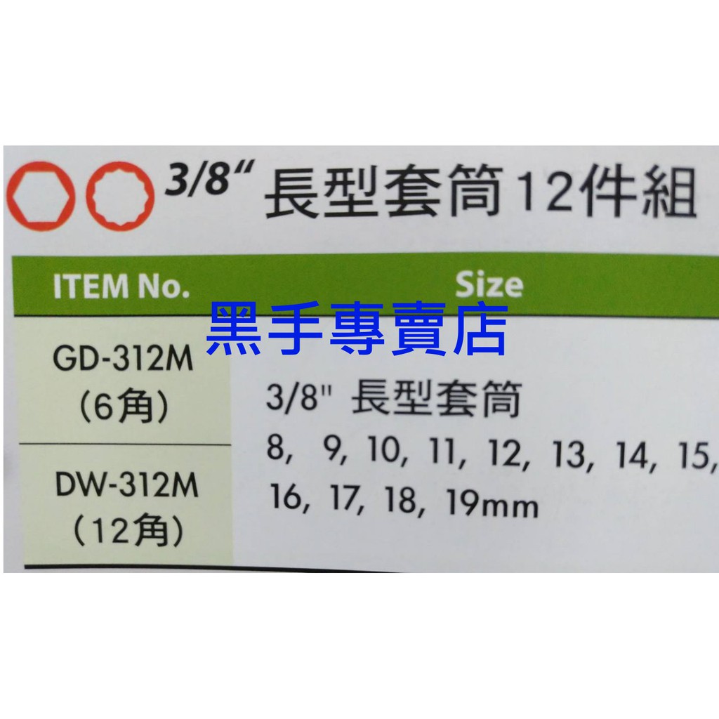 GENIUS 型號GD-312M 3/8吋6角長型套筒12件組 直購價672元