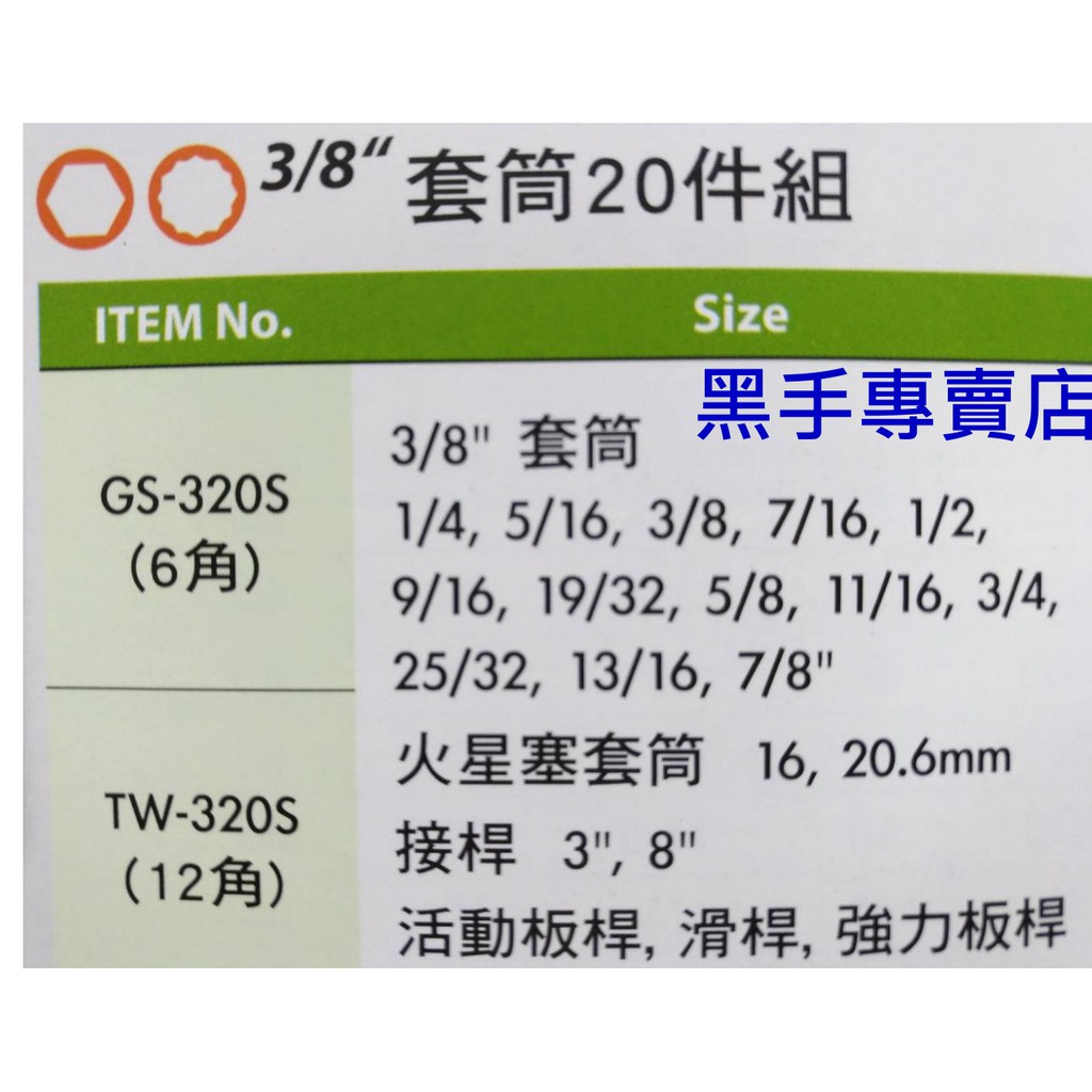 ( 另有12角套筒組 型號TW-320S 價錢一樣 )
