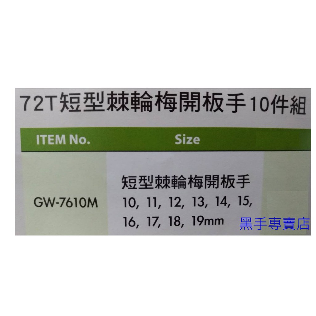 GENIUS 型號GW-7610M 72T短型棘輪梅開板手10件組 (商品規格 請參考圖二)