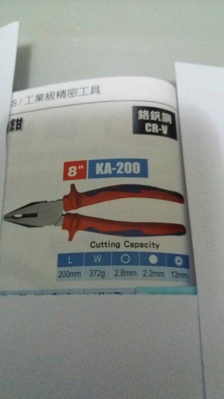 黑手專賣店 附發票 WIGA KA-200 8吋雙色柄鍍鉻鋼絲鉗 斜口鉗 另有 尖嘴鉗 斜口鉗 老虎鉗 quantity